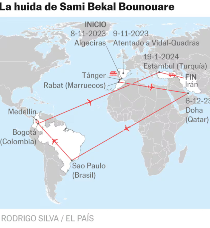 Sami Bekal Bounouare, alias ‘Pacho’, se ha convertido en el eje central de una investigación que atraviesa continentes, criminalidad organizada e intrigas geopolíticas. Hoy, su huida se perfila como una de las más extensas y elaboradas que recuerdan los servicios de seguridad europeos.